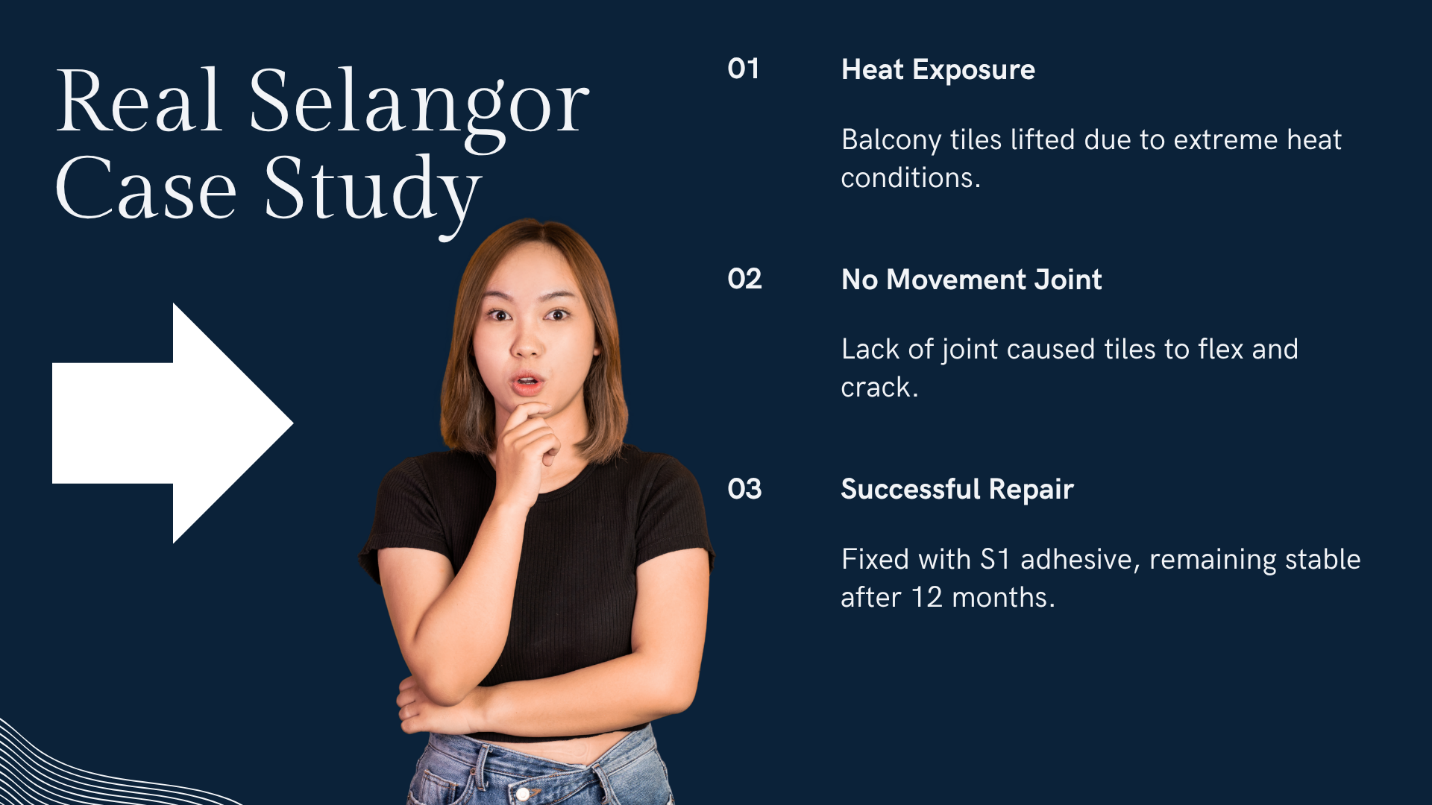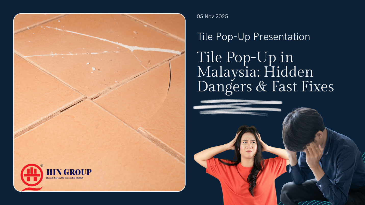 Di Hin Group, buku panduan pembaikan jubin-pop kami menangani punca sebenar yang kami lihat setiap hari di Selangor & KL: pergerakan terma merentasi balkoni yang dipanaskan matahari berbanding bahagian dalam berhawa dingin, pengawetan substrat yang tidak lengkap, kelas pelekat yang salah, sambungan pergerakan yang hilang dan kemasukan lembapan dari bilik mandi di atas.