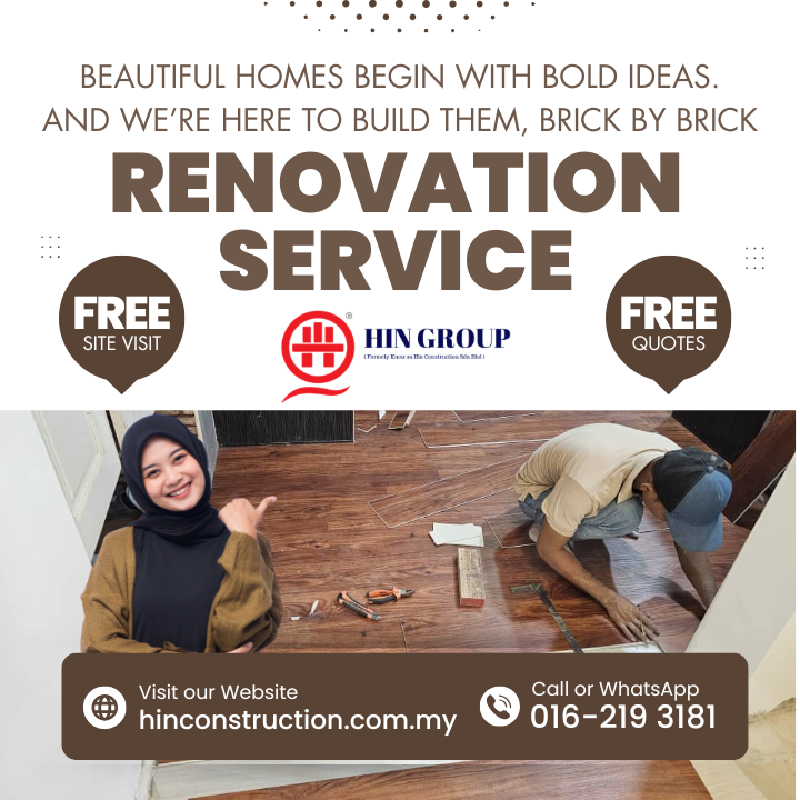 Basic upgrades (painting, flooring, bathroom) start from RM30,000, while a full modern renovation can go beyond RM100,000. Hin Group provides clear quotations tailored to your budget.